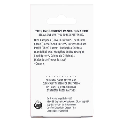 Ingredients: Organic Olive (Olea Europaea) Fruit Oil, Organic Cocoa (Theobroma Cacao) Seed Butter, Organic Shea (Butyrospermum Parkii) Butter, Candelilla (Euphorbia cerifera ) Wax, Organic Mango (Mangifera Indica) Seed Butter, Organic Calendula (Calendula Officinalis) Flower Extract